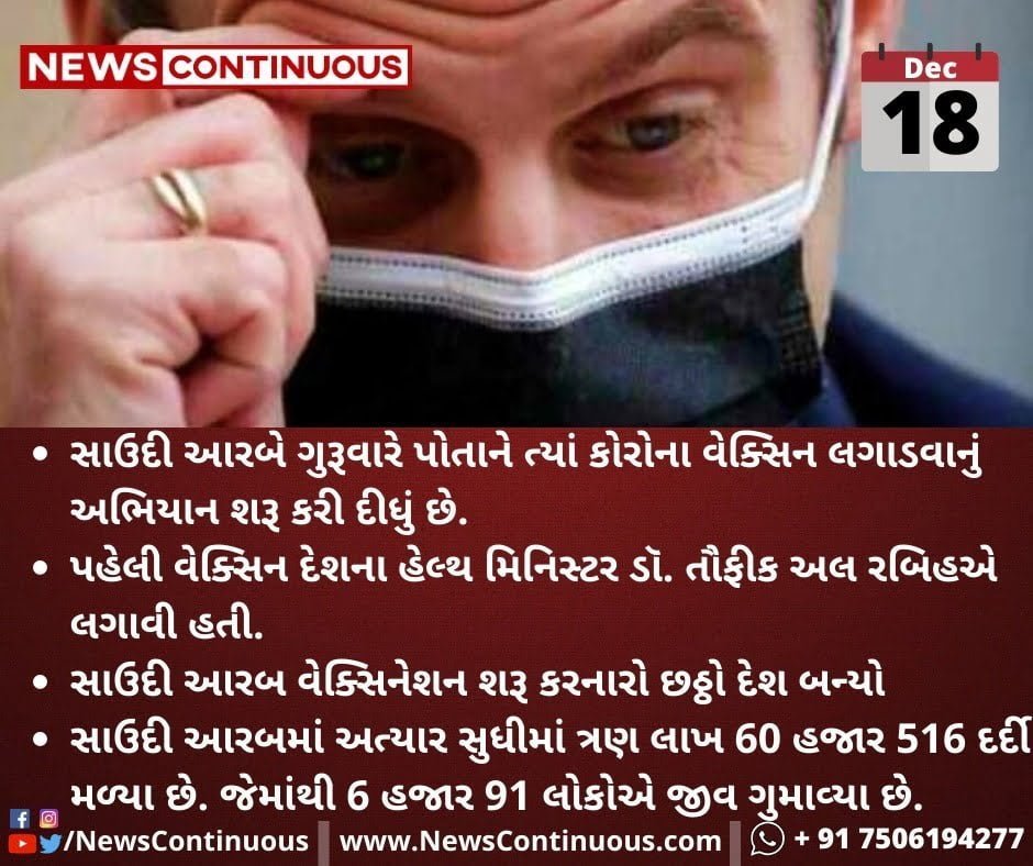 - સાઉદી આરબ વેક્સિનેશન શરૂ કરનારો છઠ્ઠો દેશ બન્યો