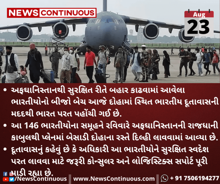 અફઘાનિસ્તાનથી સુરક્ષિત રીતે બહાર કાઢવામાં આવેલા ભારતીયોનો બીજો બેચ આજે દોહામાં સ્થિત ભારતીય દૂતાવાસની મદદથી ભારત પરત પહોંચી ગઈ છે.