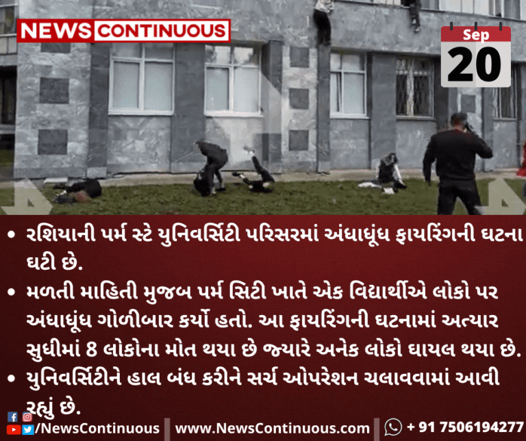 રશિયાની પર્મ સ્ટે યુનિવર્સિટી પરિસરમાં અંધાધૂંધ ફાયરિંગની ઘટના ઘટી છે.