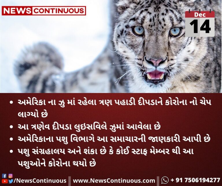 અમેરિકાના ઝૂ માં રહેલા ત્રણ પહાડી દીપડાને કોરોના નો ચેપ લાગ્યો છે