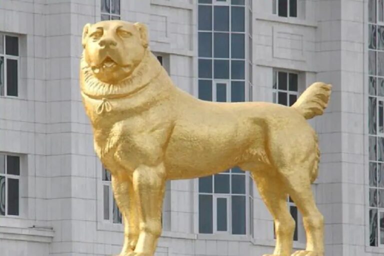 તુર્કમેનિસ્તાનની સત્તા પર આરૂઢ ગુરબાંગુલી બેર્દયમુખમેદોવ એ પોતાના વ્હાલા કૂતરાની લગભગ 50 ફુટ ઊંચી મૂર્તિ બનાવડાવી છે અને તેને તુર્કમેનિસ્તાનની રાજધાની અશ્યાબાત ના નવા વિસ્તારમાં સ્થાપિત કરી છે. આ મૂર્તિને ખાસ રીતે કાંસાથી તૈયાર કરવામાં આવી છે, જેના કારણે તે ખરાબ નહીં થાય. આ કૂતરાની 50 ફુટ ઊંચી મૂર્તિ પર 24 કેરેટ સોનાની પરત ચઢાવવામાં આવી છે. જુઓ ફોટોગ્રાફ
