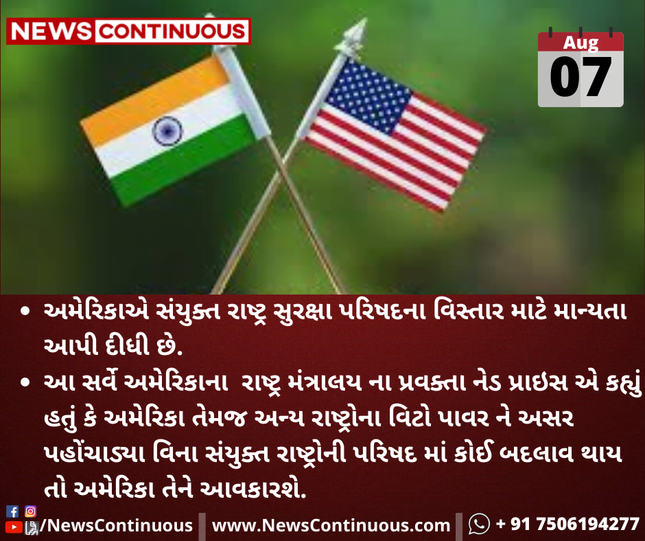 અમેરિકાએ સંયુક્ત રાષ્ટ્ર સુરક્ષા પરિષદના વિસ્તાર માટે માન્યતા આપી દીધી છે.