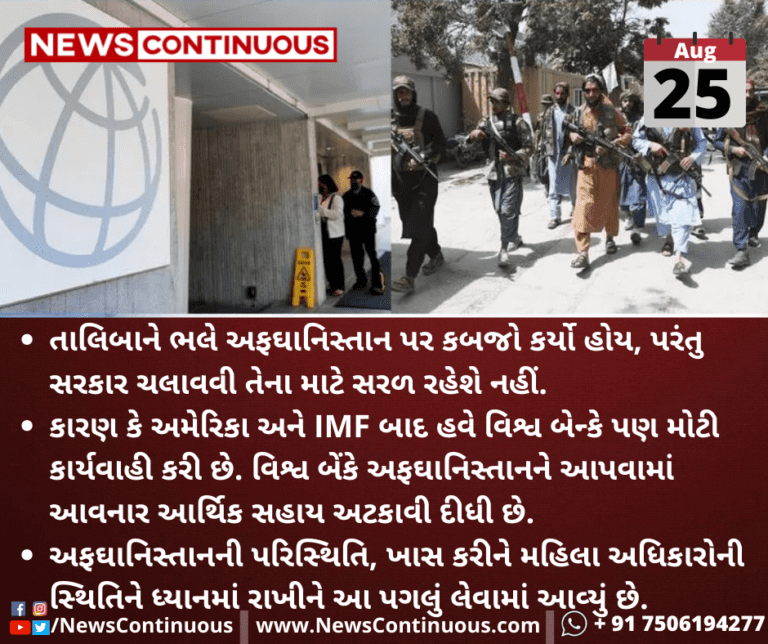 વિશ્વ બેંકે અફઘાનિસ્તાનને આપવામાં આવનાર આર્થિક સહાય અટકાવી દીધી છે.