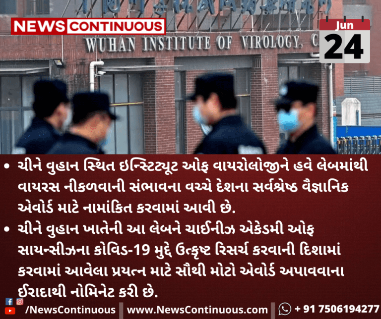 ચીને વુહાન સ્થિત ઇન્સ્ટિટ્યૂટ ઓફ વાયરોલોજીને હવે લેબમાંથી વાયરસ નીકળવાની સંભાવના વચ્ચે દેશના સર્વશ્રેષ્ઠ વૈજ્ઞાનિક એવોર્ડ માટે નામાંકિત કરવામાં આવી છે.