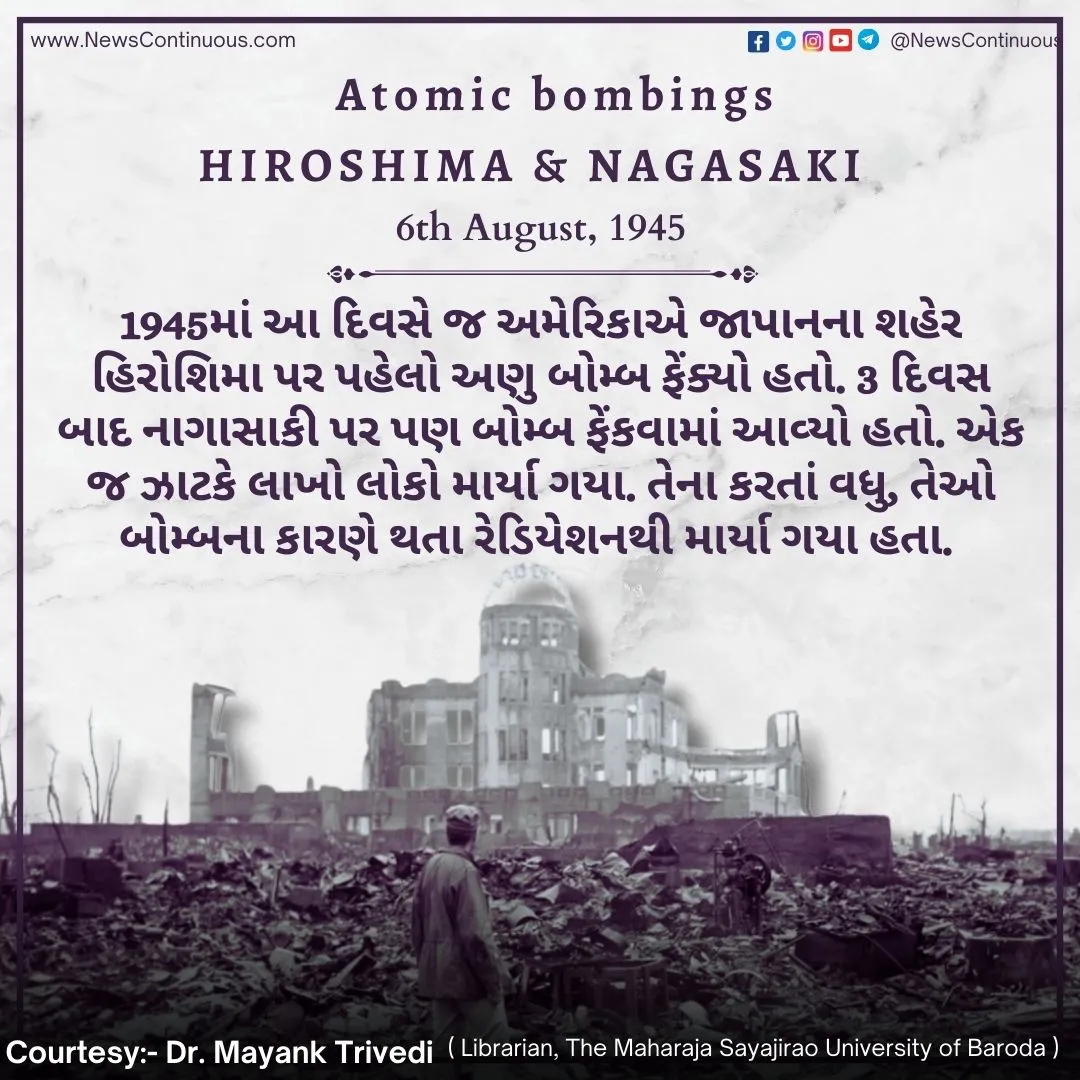 Atomic bombings of Hiroshima: 1945માં આ દિવસે જ અમેરિકાએ ( USA ) જાપાનના શહેર હિરોશિમા ( Hiroshima ) પર પહેલો અણુ બોમ્બ ફેંક્યો હતો. 3 દિવસ બાદ નાગાસાકી ( Nagasaki ) પર પણ બોમ્બ ફેંકવામાં આવ્યો હતો. એક જ ઝાટકે લાખો લોકો માર્યા ગયા. તેના કરતાં વધુ, તેઓ બોમ્બના ( Atomic bomb ) કારણે થતા રેડિયેશનથી માર્યા ગયા હતા. આ ઘટના 79 વર્ષ પહેલા બની હતી. પરંતુ આ એક એવી ઘટના છે જેને ભૂલી શકાય તેમ નથી. આ ન્યુક્લિયર બોમ્બ એટેકથી ( nuclear bomb attack ) હિરોશિમા શહેર ક્ષણવારમાં સ્મશાનમાં ફેરવાઇ ગયુ હતુ. આથી 6 ઓગસ્ટને હિરોશિમા દિવસ તરીકે યાદ કરવામાં આવે છે.