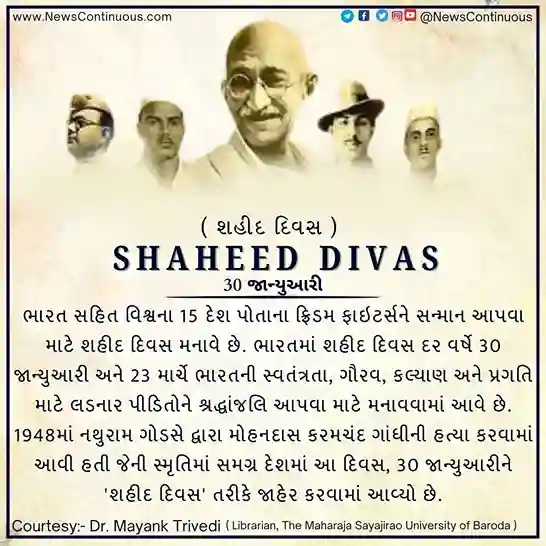 Shaheed Divas: ભારત સહિત વિશ્વના 15 દેશ પોતાના ફ્રિડમ ફાઇટર્સને સન્માન આપવા માટે શહીદ દિવસ મનાવે છે. ભારતમાં શહીદ દિવસ દર વર્ષે 30 જાન્યુઆરી અને 23 માર્ચે ભારતની સ્વતંત્રતા, ગૌરવ, કલ્યાણ અને પ્રગતિ માટે લડનાર પીડિતોને શ્રદ્ધાંજલિ આપવા માટે મનાવવામાં આવે છે. 1948માં નથુરામ ગોડસે દ્વારા મોહનદાસ કરમચંદ ગાંધીની હત્યા કરવામાં આવી હતી જેની સ્મૃતિમાં સમગ્ર દેશમાં આ દિવસ, 30 જાન્યુઆરીને ‘શહીદ દિવસ’ તરીકે જાહેર કરવામાં આવ્યો છે.