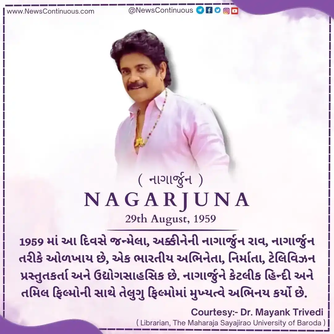 Nagarjuna : 1959 માં આ દિવસે જન્મેલા, અક્કીનેની નાગાર્જુન રાવ ( Akkineni Nagarjuna Rao ) , નાગાર્જુન તરીકે ઓળખાય છે, એક ભારતીય અભિનેતા ( Indian Actor ) , નિર્માતા, ટેલિવિઝન પ્રસ્તુતકર્તા અને ઉદ્યોગસાહસિક છે. નાગાર્જુને કેટલીક હિન્દી અને તમિલ ફિલ્મોની સાથે તેલુગુ ફિલ્મોમાં ( Telugu films ) મુખ્યત્વે અભિનય કર્યો છે. નાગાર્જુને તેની અભિનય કારકિર્દીની શરૂઆત ફિલ્મ ‘સુદીગુંડાલુ’થી કરી હતી, જે સુપરહિટ રહી હતી, પરંતુ 1987માં આવેલી ફિલ્મ ‘મજનૂ’ નાગાર્જુનની પ્રથમ મોટી સફળતા સાબિત થઈ હતી