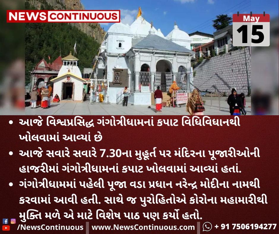 આજે સવારે સવારે 7.30ના મુહૂર્ત પર મંદિરના પૂજારીઓની હાજરીમાં ગંગોત્રીધામનાં કપાટ ખોલવામાં આવ્યાં હતાં.
