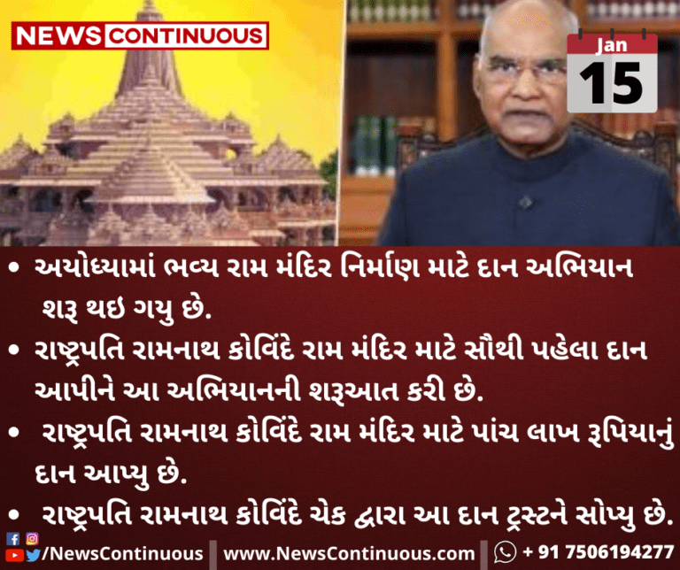- રાષ્ટ્રપતિ રામનાથ કોવિંદે રામ મંદિર માટે સૌથી પહેલા દાન આપીને આ અભિયાનની શરૂઆત કરી છે.
