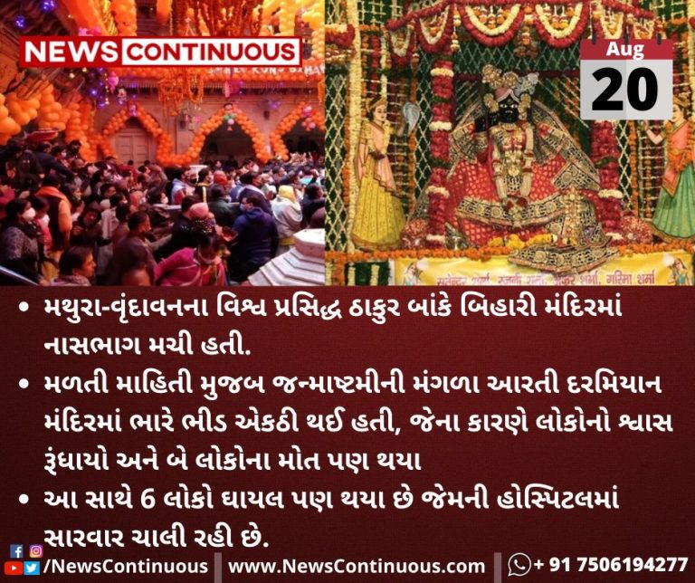 મળતી માહિતી મુજબ જન્માષ્ટમીની(Janmashtami) મંગળા આરતી(Mangala Aarti) દરમિયાન મંદિરમાં ભારે ભીડ એકઠી થઈ હતી, જેના કારણે લોકોનો શ્વાસ રૂંધાયો અને બે લોકોના મોત પણ થયા