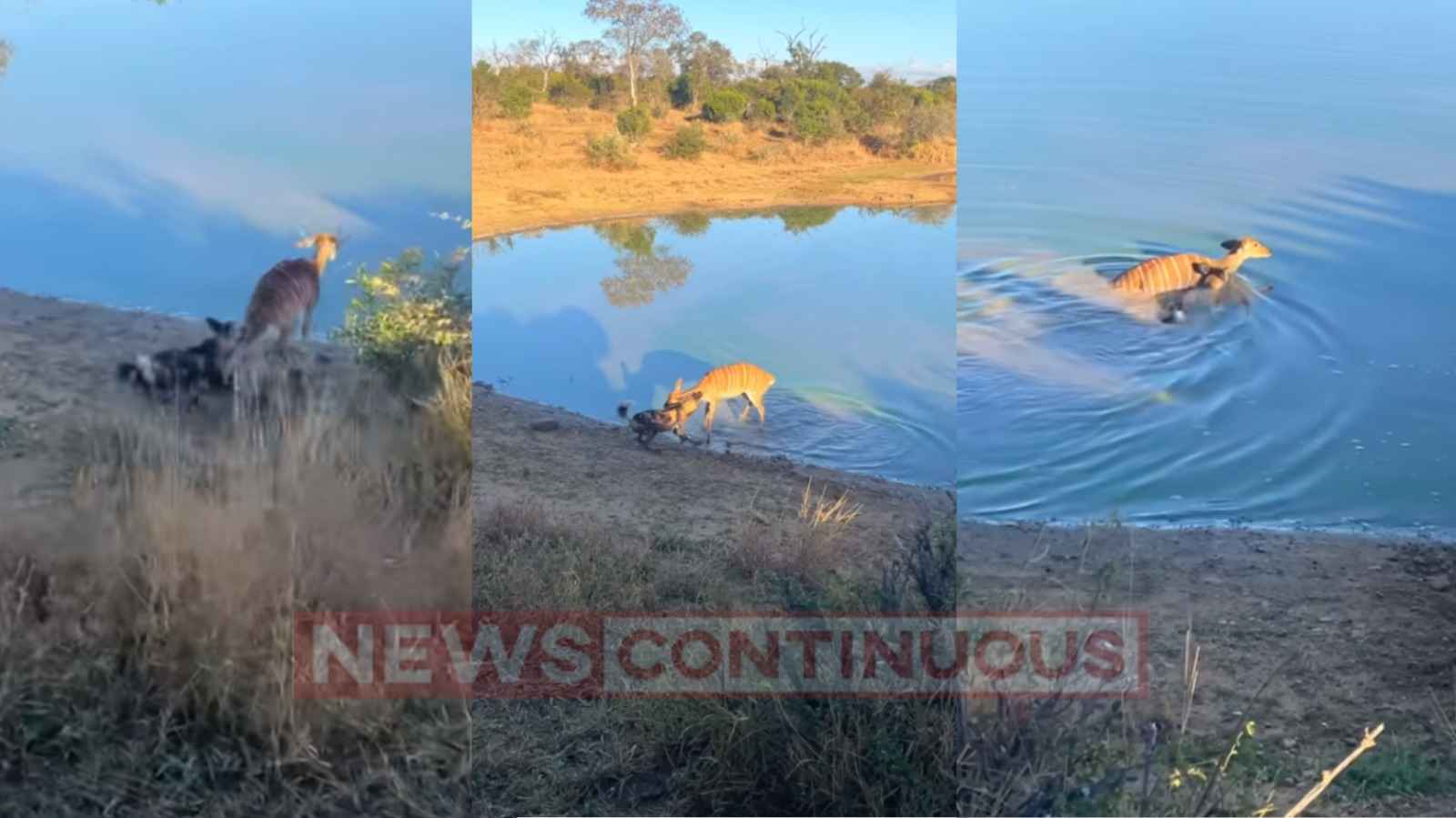વીડિયોમાં ( video ) જોઈ શકાય છે કે, હરણ નદીમાંથી બહાર આવતા જ એક જંગલી કૂતરો ( dog ) તેની પાછળ આવે છે અને તેના પર હુમલો કરે છે. આગળ વીડિયોમાં તમે જોશો કે કેવી રીતે જંગલી કૂતરો પહેલા હરણનો પગ પકડે છે અને પછી તેની ગરદન પકડી લે છે, પરંતુ તેમ છતાં હરણ છેલ્લા શ્વાસ સુધી હાર માનતું નથી. દરમિયાન, હરણ કૂતરા સાથે તળાવમાં પ્રવેશ કરે છે. પોતાને ડૂબતો ( drowning  ) જોઈને કૂતરો હરણના ગળાને છોડી દે છે. જંગલી કૂતરો હરણની ગરદન છોડી દે કે તરત જ હરણ ત્યાંથી ભાગી જાય છે.
