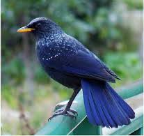 બ્લુ વ્હિસલિંગ થ્રુશ એ એક વ્હિસલિંગ થ્રુશ છે. તે સવાર અને સાંજનાં સમયે તેના જોરદાર માનવી જેવા વ્હિસલિંગ ગીત માટે જાણીતું છે. તે સંપૂર્ણ ચળકતા વાદળી રંગનું હોય છે અને તેની ચાંચ પીળા રંગની હોય છે. તેઓ કરચલાઓ, ફળો અને જંતુઓ માટે ધારાઓ અને ભીની જગ્યાએ જોવા મળે છે.