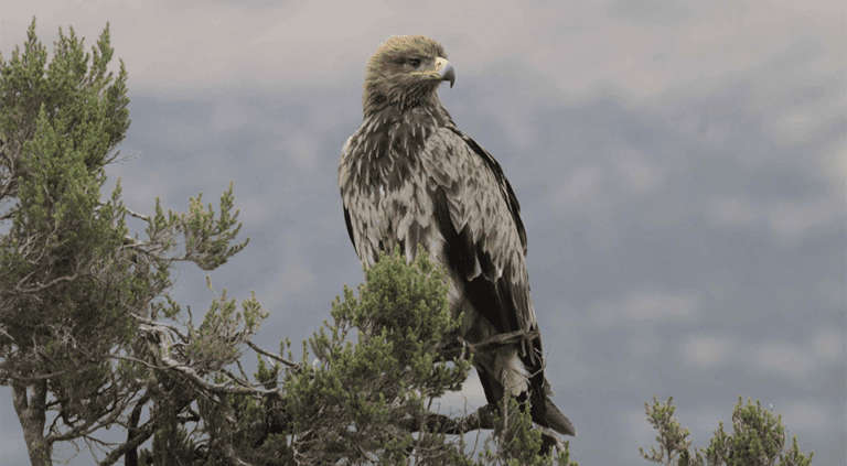 ટાઉની ઇગલ એ એક વિશાળ કદનું પક્ષી છે. બધા ઇગલની જેમ, તે એસિપિટ્રિડે કુટુંબનું સભ્ય છે. તેને "બુટેડ ઇગલ્સ" તરીકે પણ ઓળખવામાં આવે છે. આ ઇગલમાં કાળા રંગના પીંછા અને પૂંછડી સાથે ટાઉની રંગના અપરપાર્ટ્સ હોય છે. તેની પાંખો પર હળવા રંગના પટ્ટાઓ હોય છે. જયારે કે તેની આંખો ભૂરા રંગની હોય છે અને તેના પગ મોટા તીક્ષ્ણ નખથી સજ્જ હોય છે.