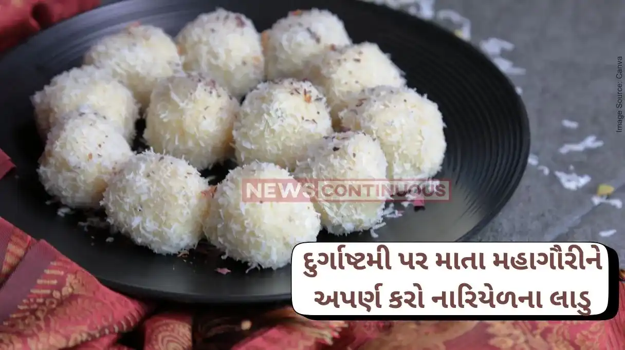 Navratri Bhog Recipe: હાલ ચૈત્ર નવરાત્રી ( Chaitra Navratri ) ચાલુ છે. આ નવરાત્રિના 9 દિવસોમાં મા દુર્ગાના નવ સ્વરૂપોની પૂજા કરવામાં આવે છે. આવી સ્થિતિમાં, દરરોજ માતાના અલગ-અલગ સ્વરૂપને વિશેષ પ્રસાદ ચઢાવવામાં આવે છે. આજે એટલે કે 16મી એપ્રિલ નવરાત્રિનો આઠમો દિવસ છે અને આ દિવસે માતા દુર્ગાના આઠમા સ્વરૂપ માતા મહાગૌરી ( Mahagauri ) ની પૂજા કરવામાં આવે છે. કહેવાય છે કે સાચા મનથી દેવીની પૂજા કરવાથી બધી મનોકામનાઓ પૂર્ણ થાય છે. આજના દિવસે નારિયેળ અથવા તેમાંથી બનાવેલી મીઠાઈઓ દેવી મહાગૌરીને અર્પણ કરવામાં આવે છે. ચાલો જાણીએ નારિયેળના લાડુ બનાવવાની રીત…