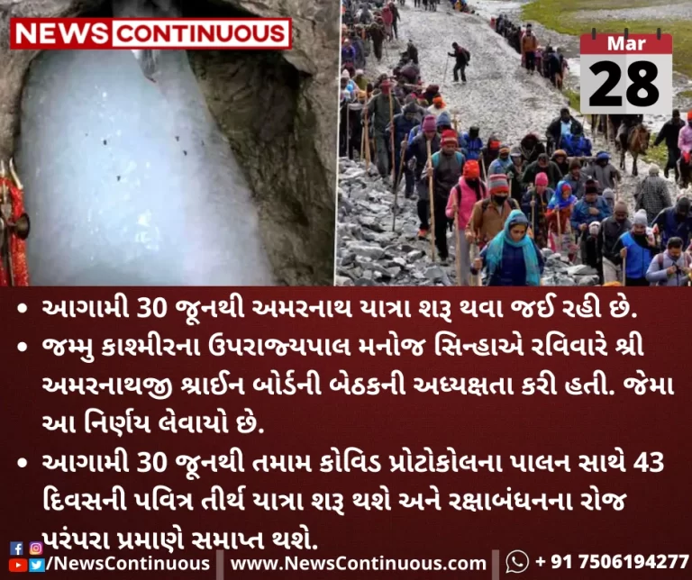 આગામી 30 જૂનથી તમામ કોવિડ પ્રોટોકોલના પાલન સાથે 43 દિવસની પવિત્ર તીર્થ યાત્રા શરૂ થશે અને રક્ષાબંધનના રોજ પરંપરા પ્રમાણે સમાપ્ત થશે.