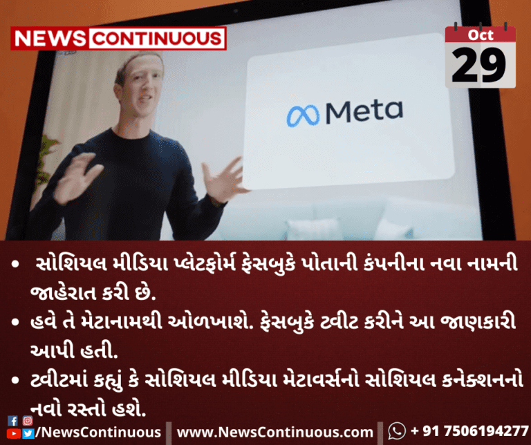 હવે તે મેટાનામથી ઓળખાશે. ફેસબુકે ટ્વીટ કરીને આ જાણકારી આપી હતી.