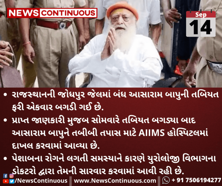 ઉલ્લેખનીય છે કે આસારામ બાપુ એક સગીરા સાથે દુષ્કર્મના આરોપમાં જોધપુર જેલમાં સજા કાપી રહ્યા છે. તેમના પર આરોપ છે કે તેમણે 15 ઓગસ્ટ 2013ના રોજ જોધપુર પાસે મનઈ વિસ્તારમાં એક સગીરાને પોતાની હવસનો ભોગ બનાવી.