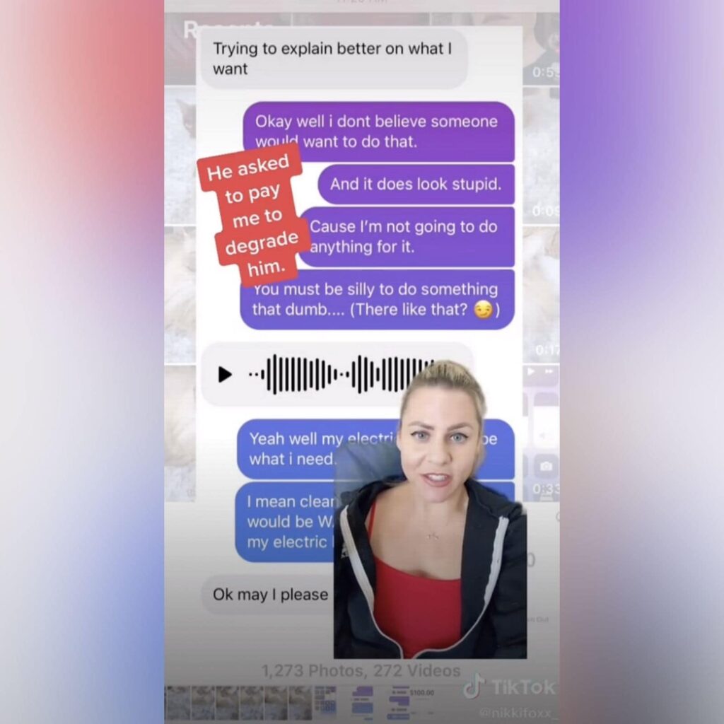 નિક્કી ફોક્સ નામની મહિલા ટિકટૉકર અને સોશિયલ મીડિયા પ્રભાવક છે. ઇન્સ્ટાગ્રામ પર પણ તેના ઘણા ચાહકો છે. એક મીડિયા હાઉસના અહેવાલ મુજબ તાજેતરમાં નિક્કીએ ટિકટૉક પર એક વીડિયો શૅર કર્યો છે, જેમાં તેણે ખૂબ જ ચોંકાવનારો ખુલાસો કર્યો છે. નિક્કીએ કહ્યું કે લોકો પોતાને અપમાનિત કરવા માટે તેને પૈસા આપે છે. ઘણી વખત લોકો પ્રખ્યાત થવા માટે અથવા તેમની પ્રસિદ્ધિ મેળવવા માટે પૈસા આપે છે, જોકે નિક્કીને પોતાને પણ ખૂબ જ આશ્ચર્યજનક લાગે છે કે લોકો આવું કેમ કરે છે.