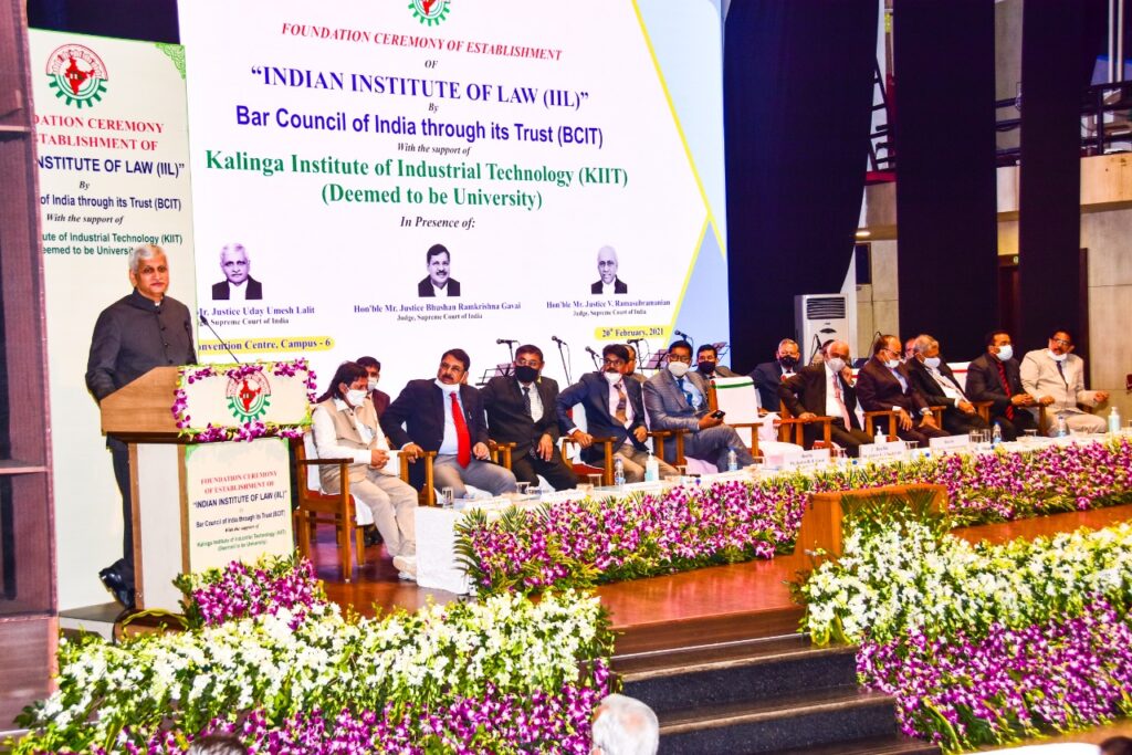 ઈન્ડિયન ઈન્સ્ટિટ્યૂટ ઓફ લૉ (IIL)ની ફાઉન્ડેશન તકતીનું અનાવરણ સુપ્રીમ કોર્ટના ન્યાયાધીશ, માનનીય ન્યાયમૂર્તિ શ્રી ઉદય ઉમેશ લલિત, માનનીય ન્યાયાધીશ શ્રી ભૂષણ રામકૃષ્ણ ગવઈ અને માનનીય ન્યાયમૂર્તિ શ્રી વી.રામાસુબ્રમણ્યમના હસ્તે કરાયું. આ અનાવરણ કાર્યક્રમ 20 ફેબ્રુઆરી 2021 ના રોજ KIIT યુનિવર્સિટી, ભુવનેશ્વર ખાતે યોજાયો. આ સમારોહમાં વરિષ્ઠ વકીલ અને અને બાર કાઉન્સિલ ઓફ ઈન્ડિયા (BCI) અને બાર કાઉન્સિલ ઓફ ઈન્ડિયા ટ્રસ્ટ (BCIT) ના પ્રમુખ શ્રી મનન કુમાર મિશ્રા, ઓડિશાના એડવોકેટ જનરલ, શ્રી અશોક પરીજા, વરિષ્ઠ એડવોકેટ અને BCITના અધ્યક્ષ શ્રી દેબી પ્રસાદ ધલ, BCITના એસોસિયેટ મેનેજિંગ ટ્રસ્ટી અને KIIT તથા KISSના સંસ્થાપક પ્રો. અચ્યુત સામંત સહિત ઘણી કાનૂની હસ્તીઓ હાજર રહી હતી અને સભાને સંબોધન કર્યું હતું..