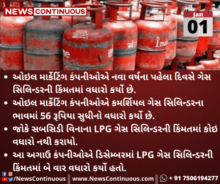 આ અગાઉ કંપનીઓએ ડિસેમ્બરમાં LPG ગેસ સિલિન્ડરની કિંમતમાં બે વાર વધારો કર્યો હતો.