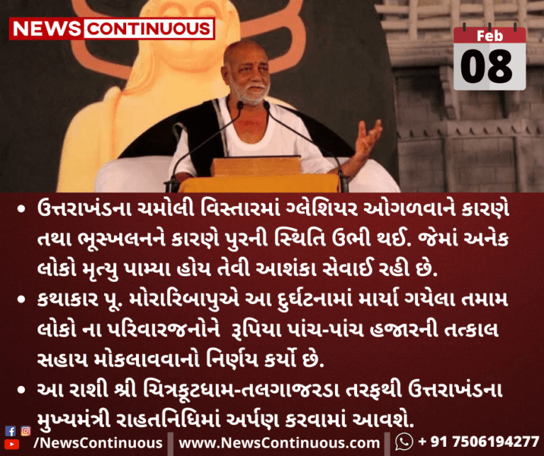 આ રાશી શ્રી ચિત્રકૂટધામ-તલગાજરડા તરફથી ઉત્તરાખંડના મુખ્યમંત્રી રાહતનિધિમાં અર્પણ કરવામાં આવશે.