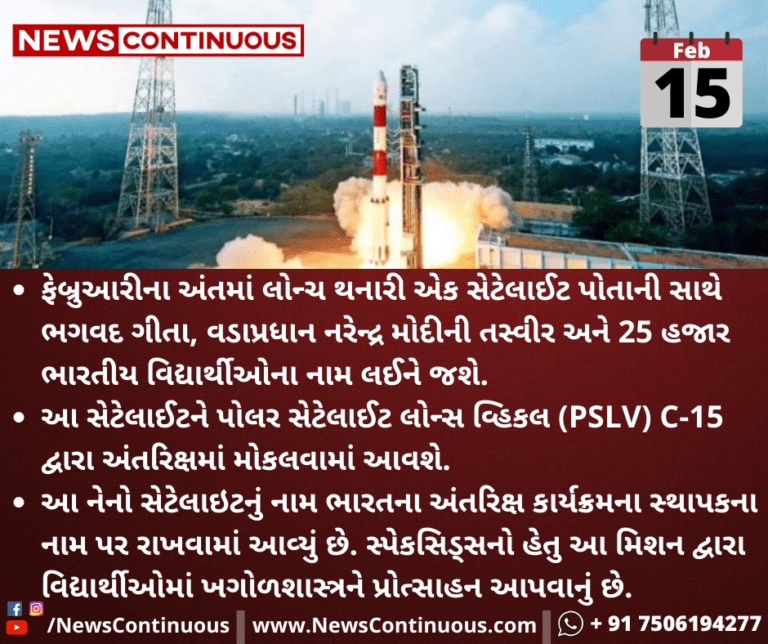 ફેબ્રુઆરીના અંતમાં લોન્ચ થનારી એક સેટેલાઈટ પોતાની સાથે ભગવદ ગીતા, વડાપ્રધાન નરેન્દ્ર મોદીની તસ્વીર અને 25 હજાર ભારતીય વિદ્યાર્થીઓના નામ લઈને જશે.