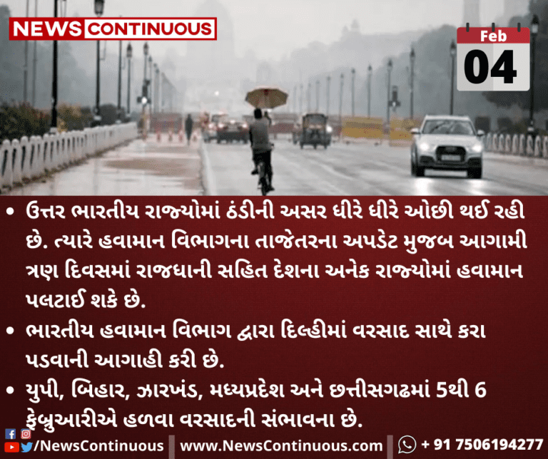 યુપી, બિહાર, ઝારખંડ, મધ્યપ્રદેશ અને છત્તીસગઢમાં 5થી 6 ફેબ્રુઆરીએ હળવા વરસાદની સંભાવના છે.