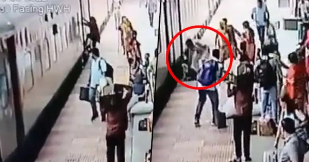 વીડિયોમાં જોવા મળે છે કે, ટ્રેનના દરવાજા ખુલ્યા બાદ મહિલા ટ્રેનમાં ચઢવા માટે દોડે છે. તે ડબ્બાની સીડી પર પણ પગ મૂકે છે પરંતુ અચાનક તે પોતાનું સંતુલન ગુમાવી બેસે છે અને પડવા લાગે છે. વીડિયોમાં જોઈ શકાય છે કે, રેલવે પોલીસ મહિલા તરફ ખૂબ જ ઝડપથી દોડે છે. આ આરપીએફ જવાન ઝડપથી મહિલાને પકડી લે છે અને તેને ઉપર ખેંચી લે છે. આ સમગ્ર ઘટના સ્ટેશન પર લાગેલા સીસીટીવીમાં(CCTV) કેદ થઈ ગઈ હતી.