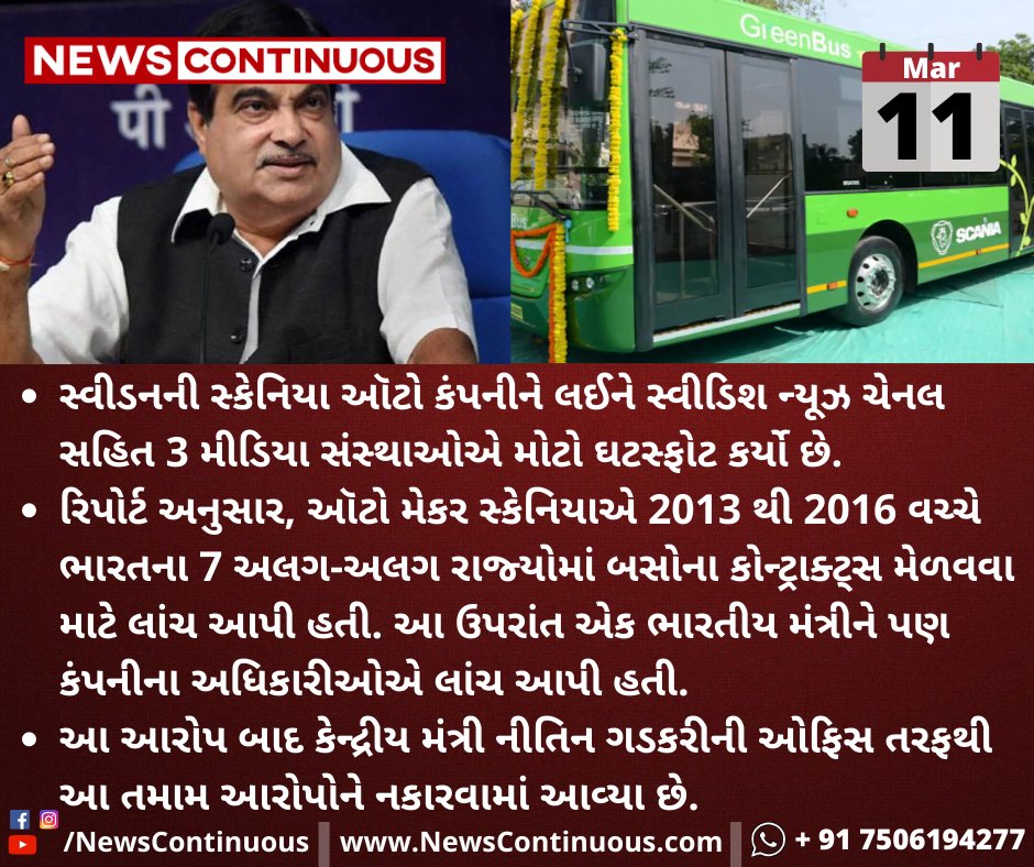 સ્વીડનની સ્કેનિયા ઑટો કંપનીને લઈને સ્વીડિશ ન્યૂઝ ચેનલ સહિત 3 મીડિયા સંસ્થાઓએ મોટો ઘટસ્ફોટ કર્યો છે. રિપોર્ટ અનુસાર, ઑટો મેકર સ્કેનિયાએ 2013 થી 2016 વચ્ચે ભારતના 7 અલગ-અલગ રાજ્યોમાં બસોના કોન્ટ્રાક્ટ્સ મેળવવા માટે લાંચ આપી હતી.