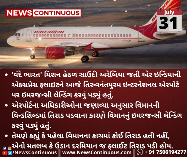'વંદે ભારત' મિશન હેઠળ સાઉદી અરેબિયા જતી એર ઇન્ડિયાની એક્સપ્રેસ ફ્લાઇટને આજે તિરુવનંતપુરમ ઇન્ટરનેશનલ એરપોર્ટ પર ઇમરજન્સી લેન્ડિંગ કરવું પડ્યું હતું.