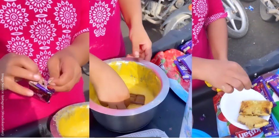 આ વિડિયોમાં એક મહિલા ડેરી મિલ્ક ચોકલેટના ( chocolate ) બે પેકેટ ખોલીને ચણાના લોટના ( gram flour ) બેટરમાં બોળી દે છે. તે પછી તે ગોલ્ડન બ્રાઉન થાય ત્યાં સુધી તેમને તેલમાં ડીપ ફ્રાય કરે છે. જેમ-જેમ વીડિયો આગળ વધે છે, તેમ-તેમ તે પકોડા પ્લેટમાં આવે છે, તેના પર મસાલા છાંટી અને તેને લીલી ચટણી સાથે સર્વ કરે છે. અંતમાં, એક માણસ લીલી ચટણી સાથે આ ચોકલેટ પકોડાનો સ્વાદ લે છે. આ વીડિયો જોઈને પકોડાના ચાહકો ગુસ્સે થઈ ગયા છે. તો કેટલાક લોકો મૂંઝવણમાં મુકાઈ ગયા છે.
