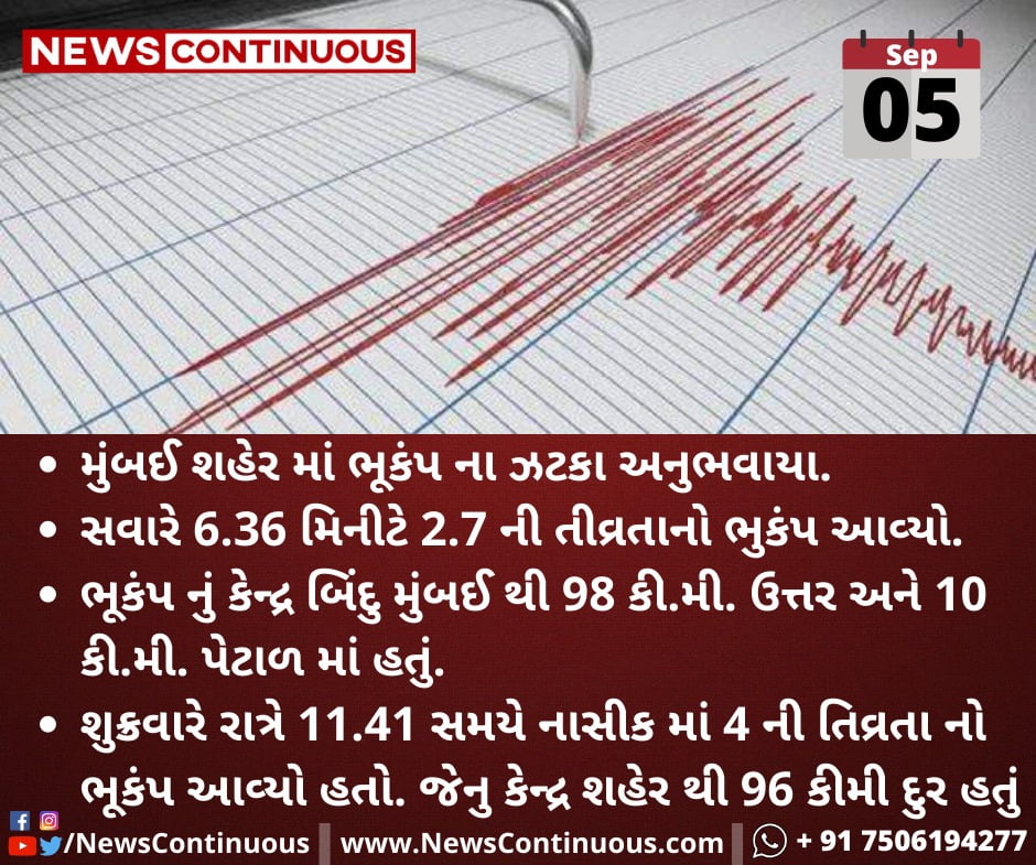 મુંબઈ શહેર માં ભૂકંપ ના ઝટકા અનુભવાયા, કોઈ નુકસાન નહીં. જાણો વિગત…