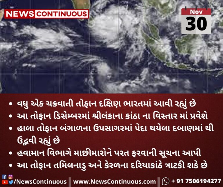 વધુ એક ચક્રાવાત આકાર લઈ રહ્યું છે. દક્ષિણ ભારત માં એલર્ટ. જાણો વિગત…