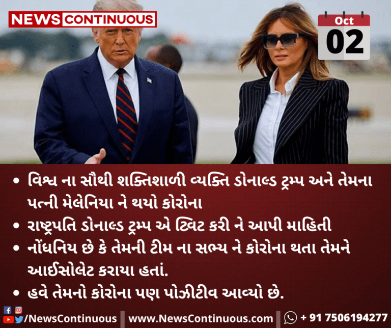 વિશ્વ ના સૌથી શક્તિશાળી વ્યક્તિ ડોનાલ્ડ ટ્રમ્પ ને થયો કોરોના. વાઈટ હાઉસ માં હડકંપ.
