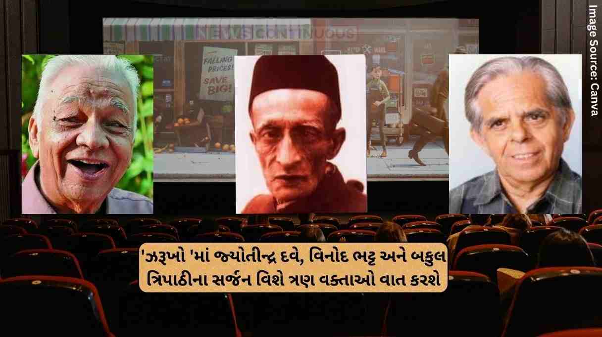 Zharukho: ‘ઝરૂખો ‘ની આ સાહિત્યિક સાંજમાં જ્યોતીન્દ્ર દવેના સાહિત્ય વિશે દેવાંગ શાહ, વિનોદ ભટ્ટના સર્જન વિશે મિતા દીક્ષિત અને બકુલ ત્રિપાઠીના સર્જન વિશે દેવલ જ્ઞાની વાત કરશે. કેટલાક હાસ્ય નિબંધોમાંથી વાચિકમ પણ થશે.