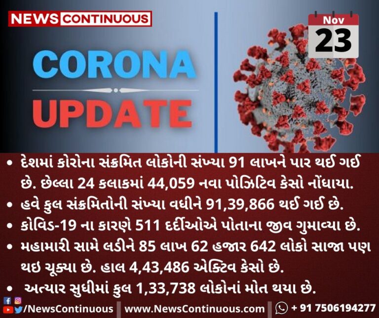 દેશમાં કોરોના સંક્રમિતોની સંખ્યા 91 લાખને પાર, કુલ મૃત્યુઆંક 1,33,738એ પહોંચ્યો. જાણો વિગત…