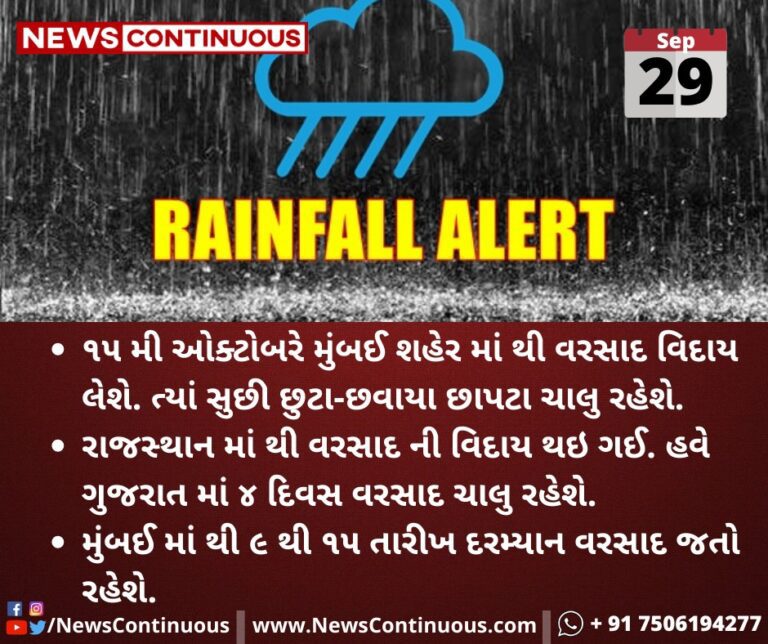 વરસાદ કઈ તારીખે મુંબઈ અને ગુજરાત માંથી વિદાય લેશે. તેમજ હવામાન વિભાગે શું કરી આગાહી. જાણવા માટે ક્લીક કરો…