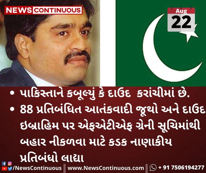 પાકિસ્તાને કબલ્યું કે અંડરવર્લ્ડ ડોન દાઉદ ઇબ્રાહિમ કરાંચીમાં છે…