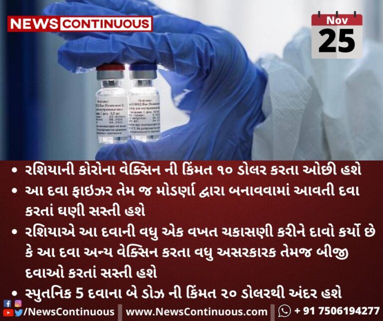 સાચેજ…. ખુશ ખબર. કોરોના થી રક્ષણ આપવા આવી રહી છે સ્પુતનિક ૫, માત્ર ૧૦ ડોલર માં. રશીયાએ ૧૦ કરોડ વેક્સીન બનાવવાની શરુઆત કરી દીધી. જાણો વિગત