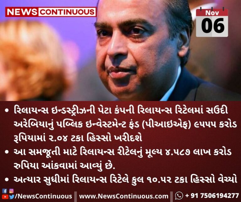 રિલાયન્સને કોરોના બાદ દિવાળી પણ ફળી, સાઉદીની આ કંપની 9555 કરોડનું કરશે રોકાણ