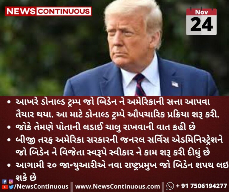 આખરે ઘીના ઠામમાં ઘી પડી રહ્યું.. ડોનાલ્ડ ટ્રમ્પ જો બિડેન ને અમેરિકાની સત્તા આપવા તૈયાર થયા. જાણો વિગત…