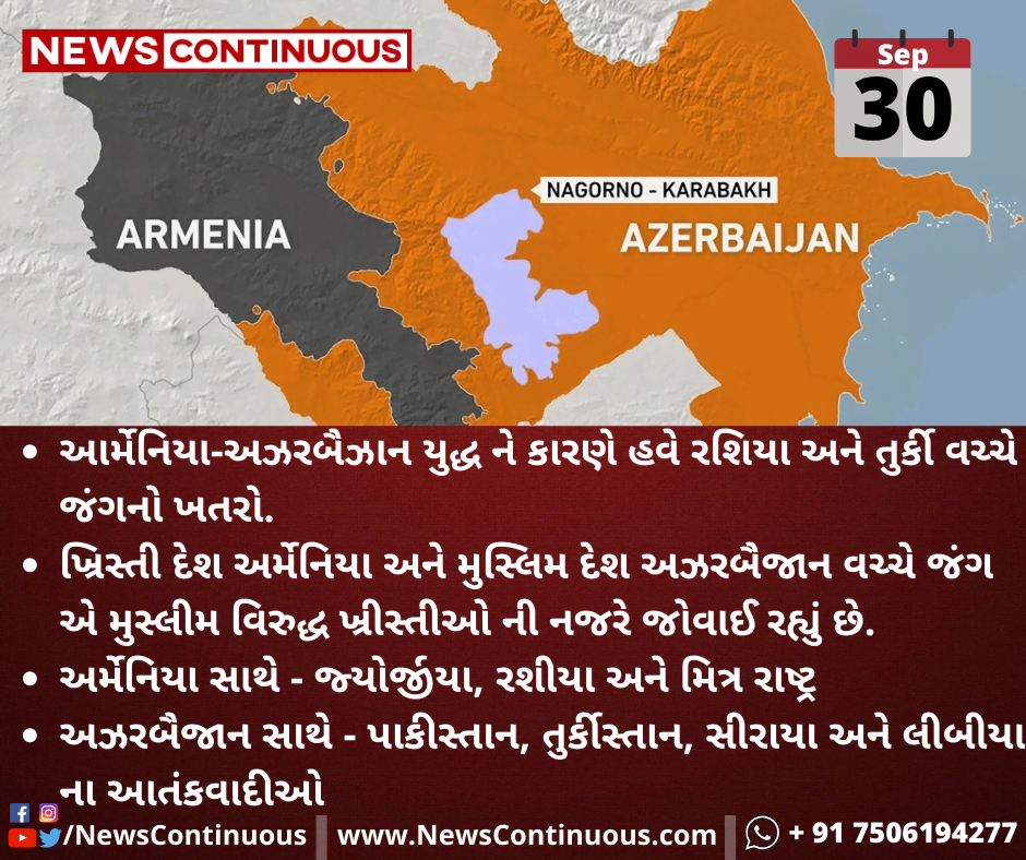 અર્મેનિયા અને અઝરબૈજાન ની લડાઈ માં વિશ્વ નાં મોટા દેશોએ પોતાની તોપો તાકી. જાણો કોણ કોના પક્ષે લડી રહ્યું છે.