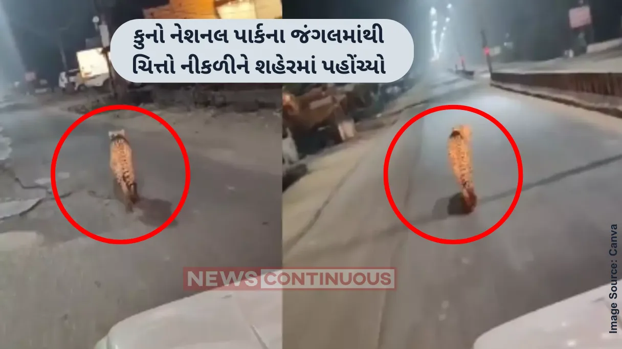 Kuno National Park: મધ્યપ્રદેશના શ્યોપુર જિલ્લામાં રાત્રે રસ્તાઓ પર દીપડાનો વિડિયો સોશિયલ મીડિયા પર ઝડપથી વાયરલ થઈ રહ્યો છે. જણાવવામાં આવી રહ્યું છે કે કુનો નેશનલ પાર્કમાંથી મુક્ત થયેલો ચિત્તો ‘અગ્નિ’ ભટકીને શહેરમાં પહોંચી ગયો છે. વન વિભાગના અધિકારીઓના જણાવ્યા અનુસાર ચિત્તો અમરાલ નદીના કિનારે થઈને સ્ટેડિયમ સુધી પહોંચ્યો હતો. અહીં તેણે કૂતરાનો શિકાર કર્યો. આ પછી તે શિવપુરી રોડ પર આવ્યો.