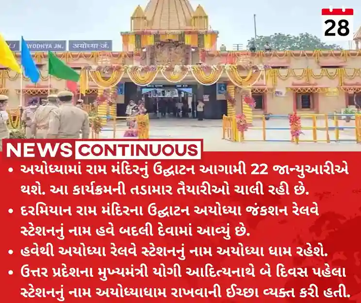 - હવેથી અયોધ્યા રેલવે સ્ટેશનનું નામ અયોધ્યા ધામ રહેશે.