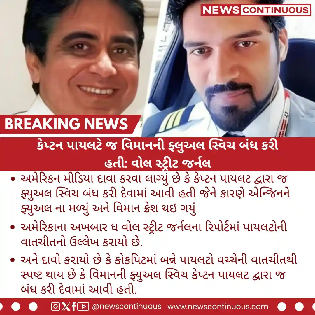 - અને દાવો કરાયો છે કે કોકપિટમાં બન્ને પાયલટો વચ્ચેની વાતચીતથી સ્પષ્ટ થાય છે કે વિમાનની ફ્યુઅલ સ્વિચ કેપ્ટન પાયલટ દ્વારા જ બંધ કરી દેવામાં આવી હતી.