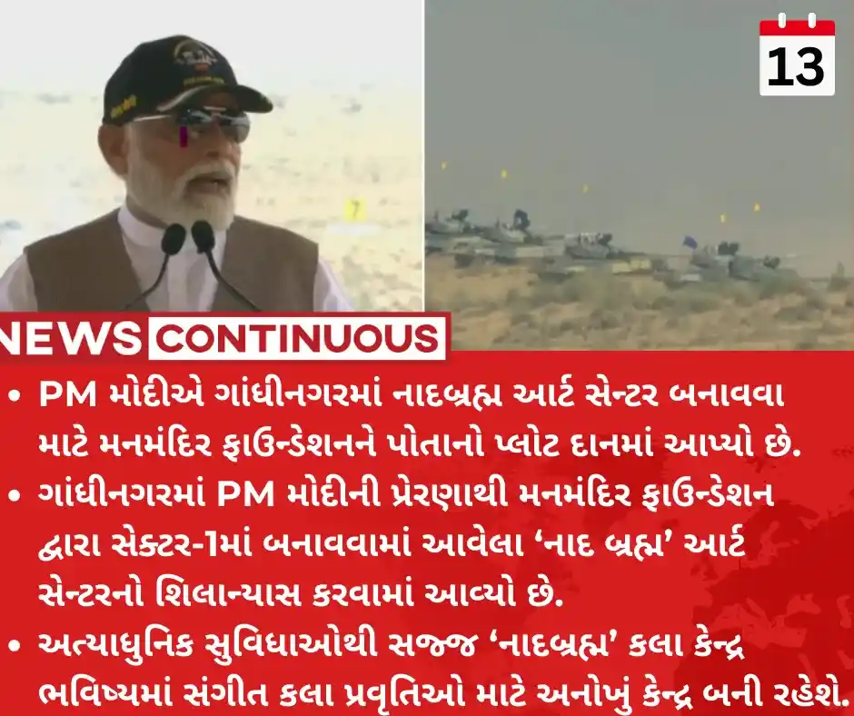 - PM મોદીએ ગાંધીનગરમાં નાદબ્રહ્મ આર્ટ સેન્ટર બનાવવા માટે મનમંદિર ફાઉન્ડેશનને પોતાનો પ્લોટ દાનમાં આપ્યો છે.