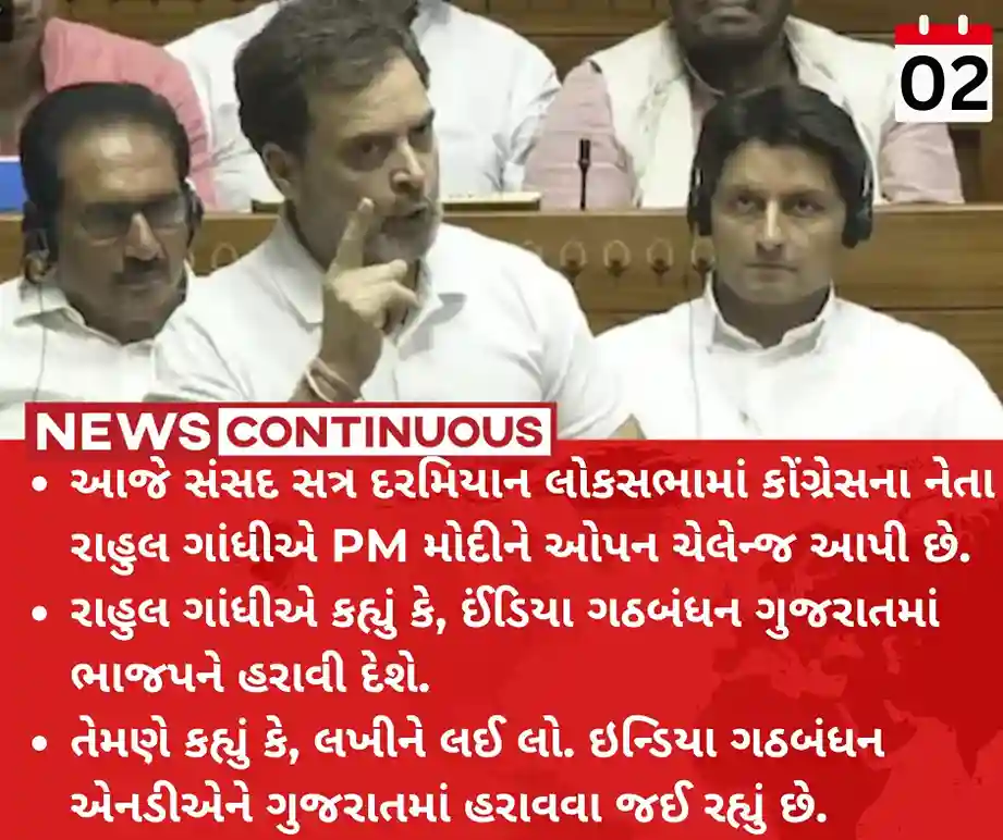 - આજે સંસદ સત્ર દરમિયાન લોકસભામાં કોંગ્રેસના નેતા રાહુલ ગાંધીએ PM મોદીને ઓપન ચેલેન્જ આપી છે.