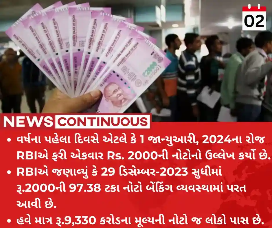 - નવા વર્ષના પહેલા દિવસે એટલે કે 1 જાન્યુઆરી, 2024ના રોજ RBIએ ફરી એકવાર 2000 રૂપિયાની નોટોનો ઉલ્લેખ કર્યો છે.