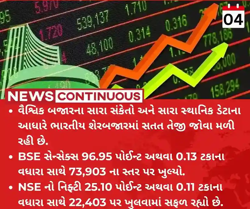 - વૈશ્વિક બજારના સારા સંકેતો અને સારા સ્થાનિક ડેટાના આધારે ભારતીય શેરબજારમાં સતત તેજી જોવા મળી રહી છે.