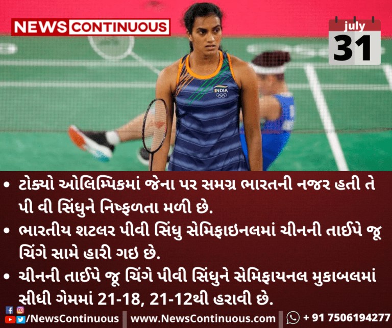 ટોક્યો ઓલિમ્પિકમાં જેના પર સમગ્ર ભારતની નજર હતી તે પી વી સિંધુને નિષ્ફળતા મળી છે.